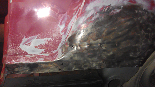 This area was re-repared, this time correctly, by dinging it out from the inside with a bodyworking hammer and dolley.