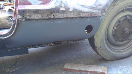 When work began it was beleived that new production repair panels were available for all six parts of the outer skin that are involved in the rockers, and some internal pieces, such as the cabriolet stiffeners. However, in actual practice, at the time they were needed, only later panels were available for the main rocker skins - the ones directly below the door and covered over by part of the front and rear fenders - and the available pieces have a different curve than this vehicle would require.