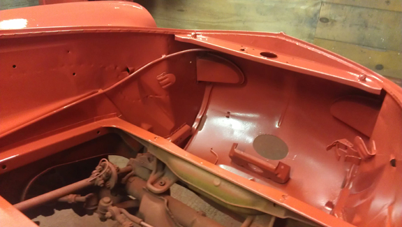 Paint was actually shot through the horn hole to ensure the horn mounting bracket was fully coated.