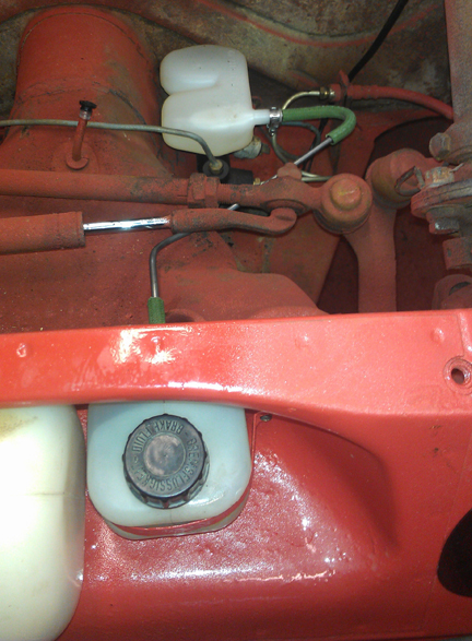 fill brake fluid into the lower reservoir! Clever, eh? The master cylinder's