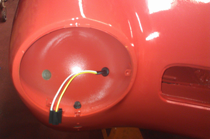 AT RIGHT: This image, taken a bit later, shows the parts just discussed. Also visible is a wire to the grounding point of the left horn - this was just a convenient grounding point for testing the electrical system.