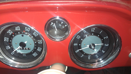 The gauges were previously rebuilt by North Hollywood Speedometer, the clock having been converted to 12v and all new 12v illumination bulbs provided. And now it was time: The speedo and clock were installed into the dash and hooked up correctly.